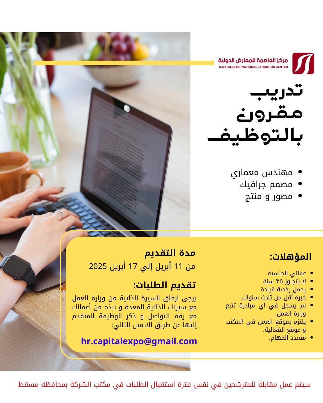 مركز العاصمة للمعارض الدولية - تدريب مقرون بالتوظيف ( مهندس معماري + مصمم جرافيك + مصور ومنتج )