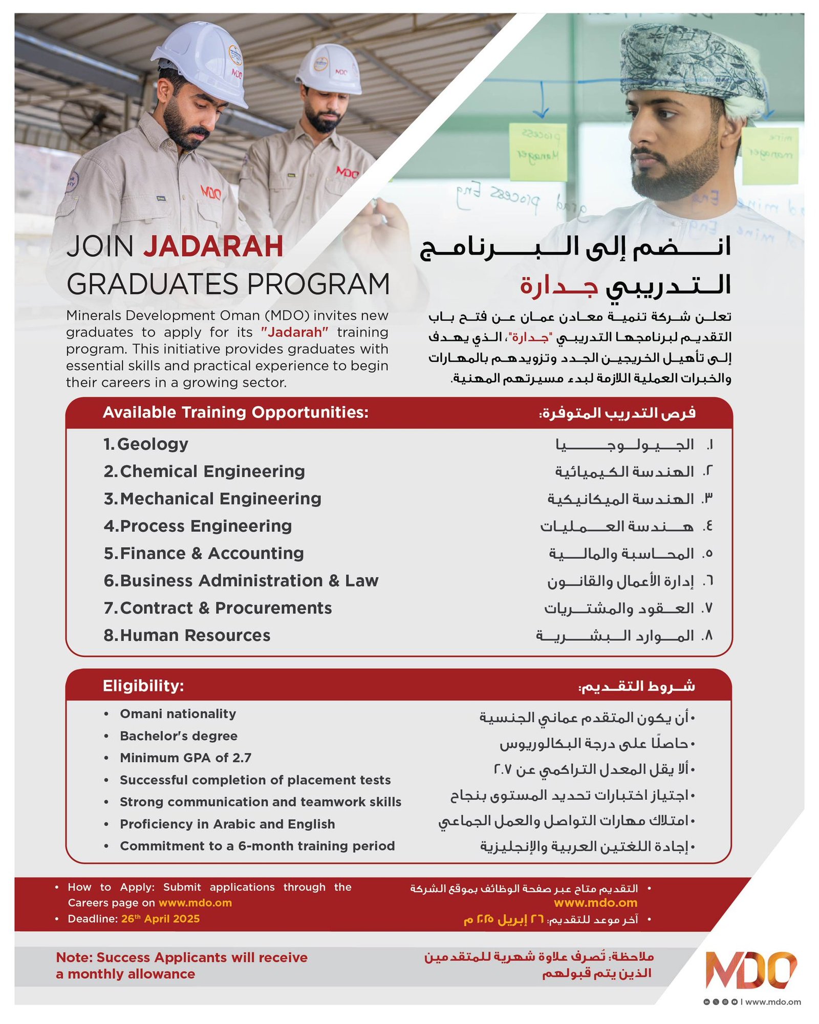شركة تنمية معادن عمان - برنامج جدارة يوفر فرص تدريبية في مختلف التخصصات للخريجين + علاوة شهرية
