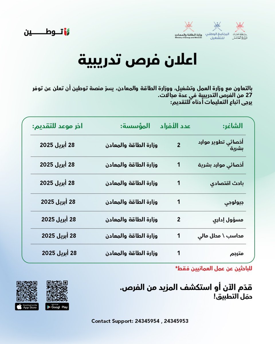 منصة توطين - 27 من الفرص التدريبية في وزارة الطاقة والمعادن