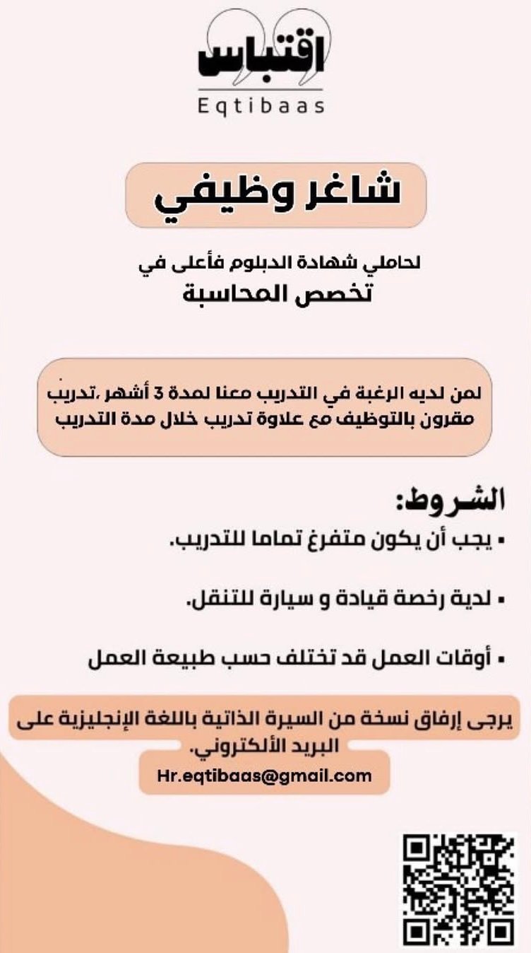 شركة اقتباس في مسقط - فرصة تدريب مقرونة بالتوظيف ( محاسبة )