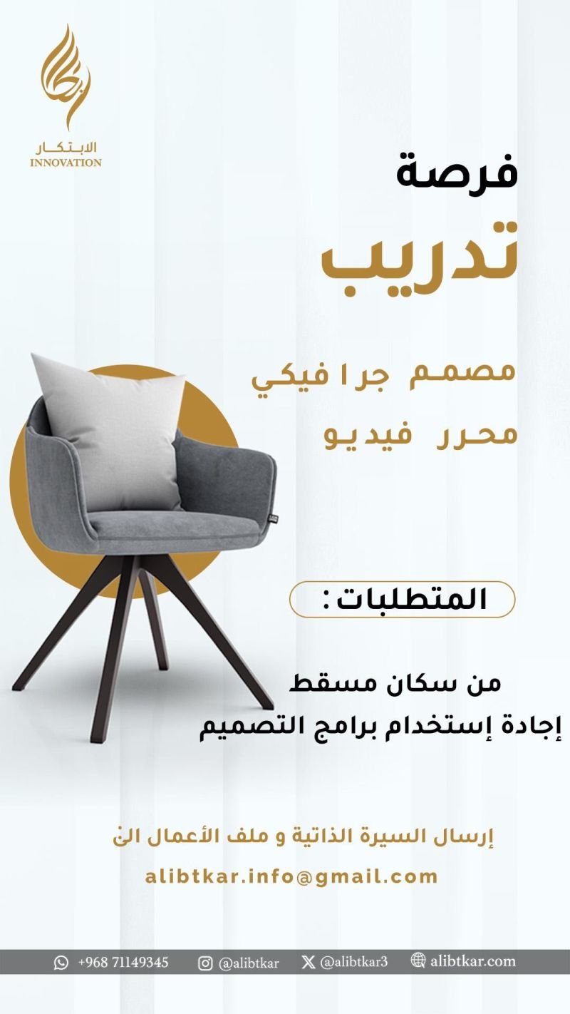 شركة الابتكار للتصميم والخدمات في مسقط - فرصة تدريبية مع علاوة ( مصمم جرافيكي + محرر فيديو )