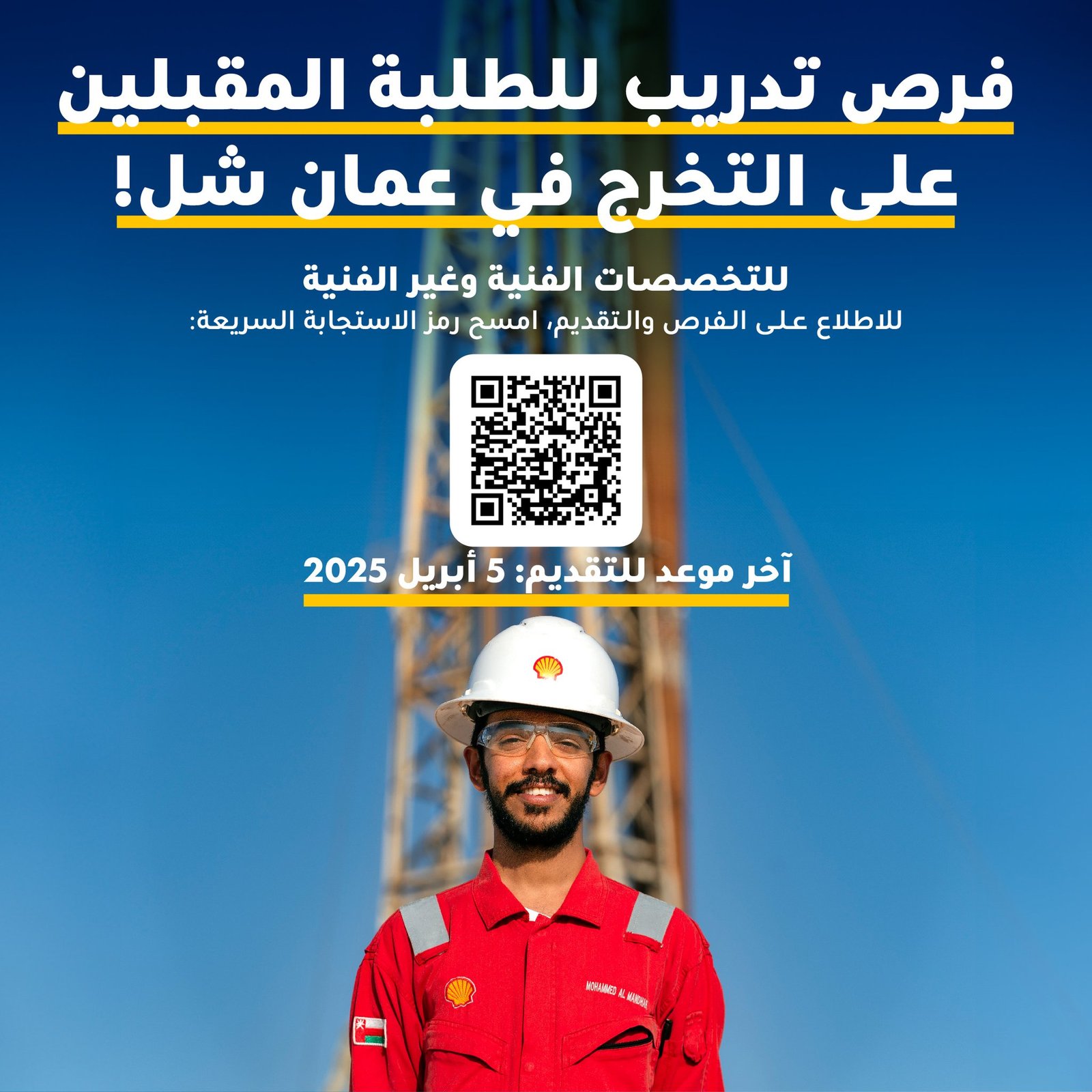 شركة شل عمان - البرنامج التدريبي الممتد لمدة 8 أسابيع والمصمم لطلاب الجامعات للتخصصات الفنية وغير الفنية