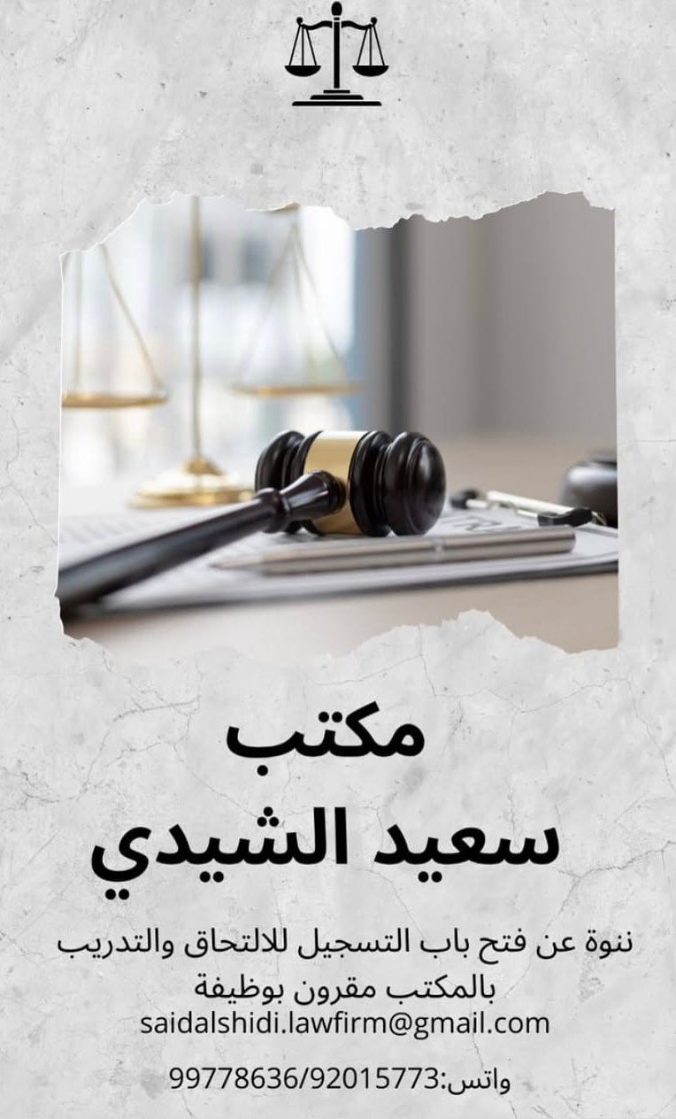 مكتب سعيد الشيدي محامون ومستشارون قانونيون في الخوير - فرصة تدريبية مقرونة بالتوظيف ( محامي تحت التدريب )