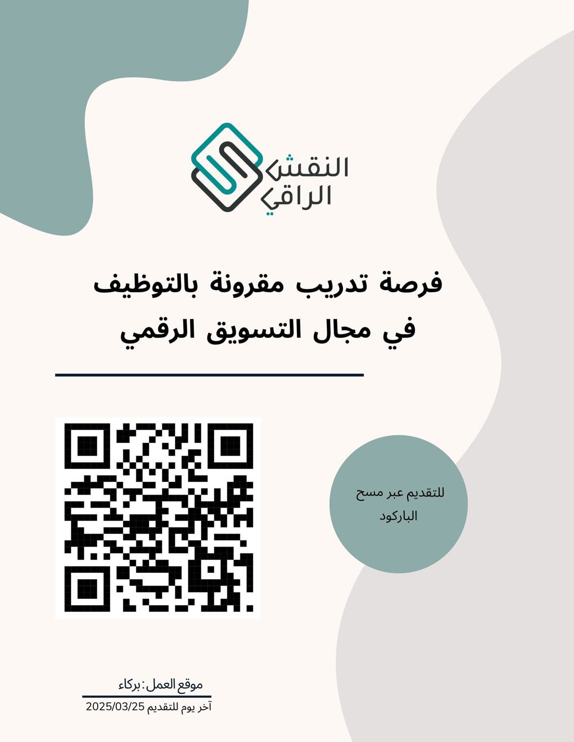 النقش الراقي في بركاء - فرصة تدريب مقرونة بالتوظيف في مجال التسويق الرقمي مع علاوة شهرية 100 ريال