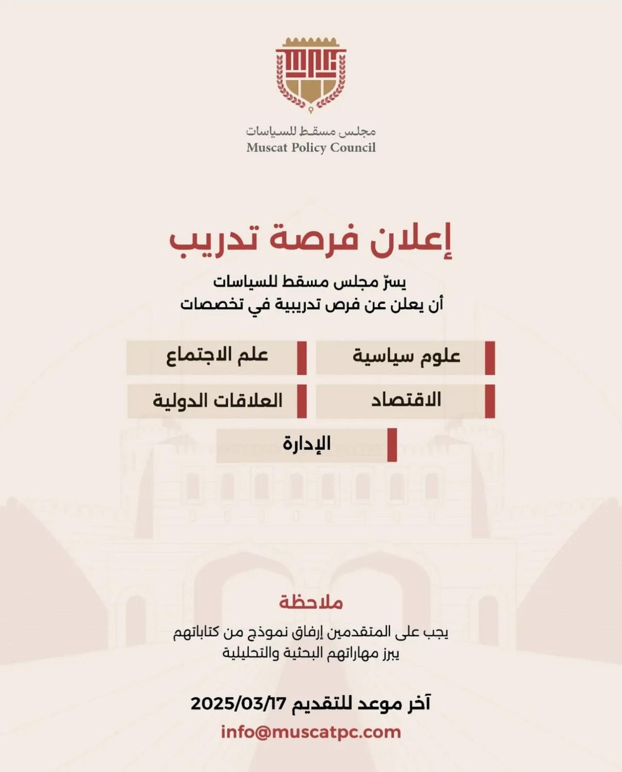 مجلس مسقط للسياسات - فرص تدريبية في مختلف التخصصات