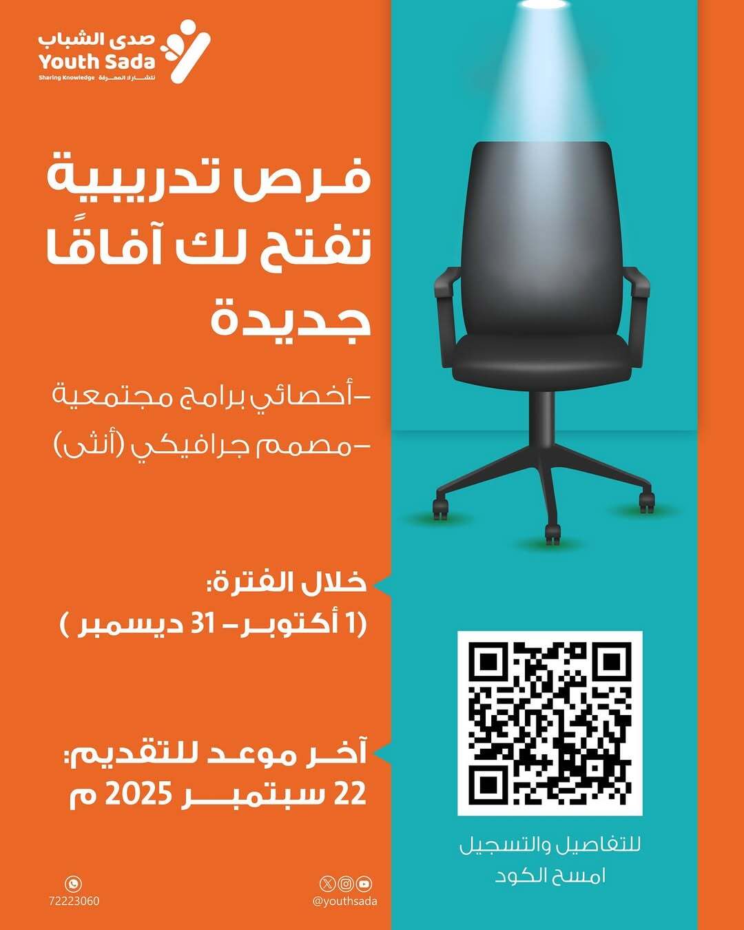 صدى الشباب في عبري - فرص تدريبية للخريجين ضمن أقسام المؤسسة + مكافئة شهرية ( أخصائي برامح مجتمعية + مصممة جرافيك )
