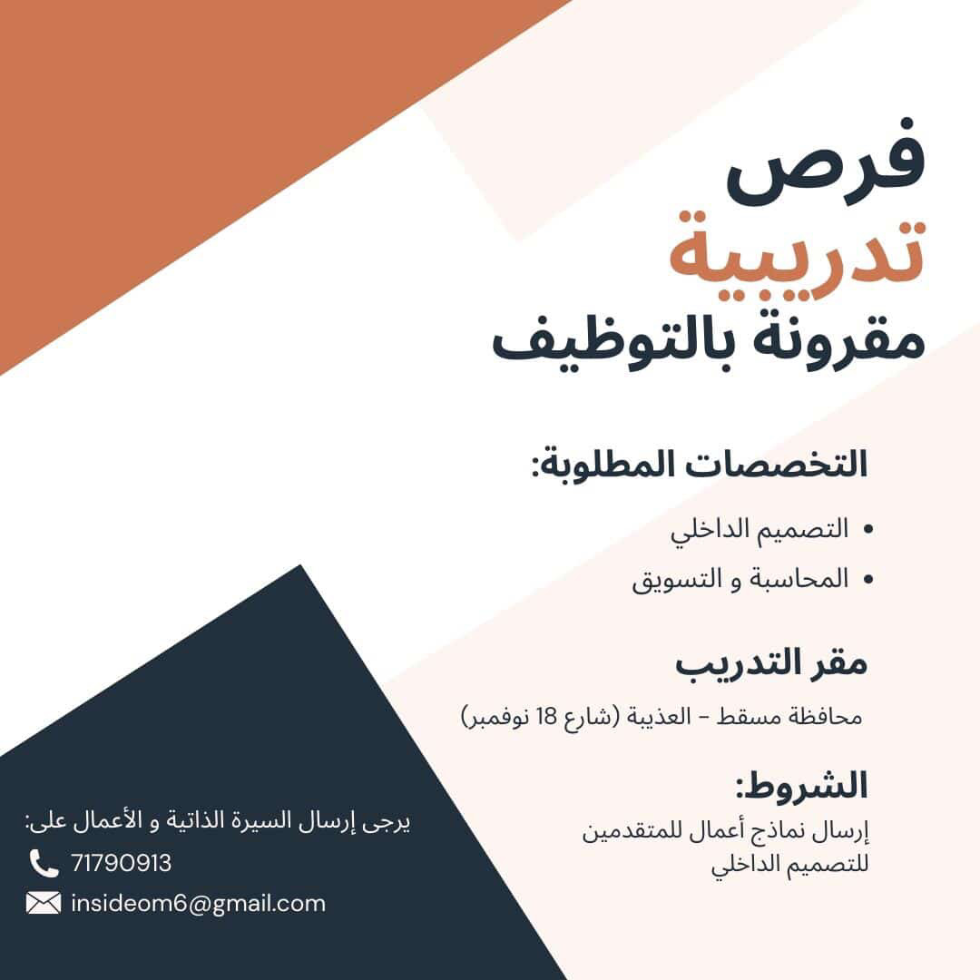 شركة الانعكاس للديكور في مسقط - فرص تدريبية مقرونة بالتوظيف في التخصصات ( التصميم الداخلي + المحاسبة و التسويق )