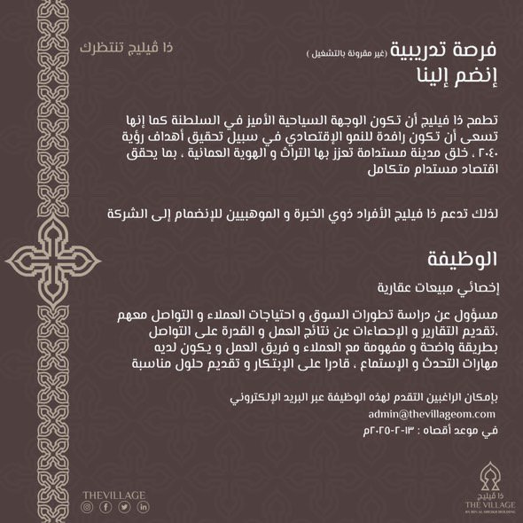 ذا فيليج - فرصة تدريبية ( أخصائي مبيعات عقارية )