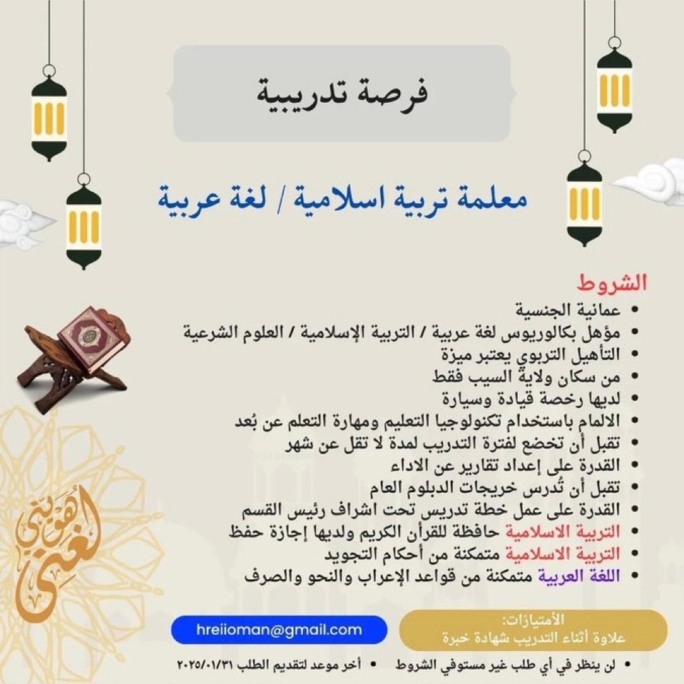 معهد الاتحاد الدولي في الموالح - فرصة تدريبية مع علاوة شهرية ( معلمة تربية إسلامية )