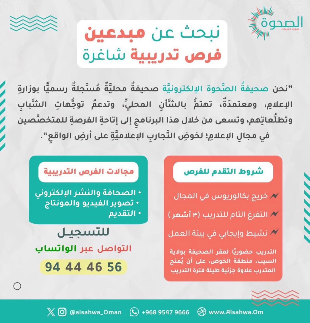 الصحوة الإلكترونية - فرص تدريبية في مجال الصحافة والتصوير الفيديو والمونتاج والتقديم