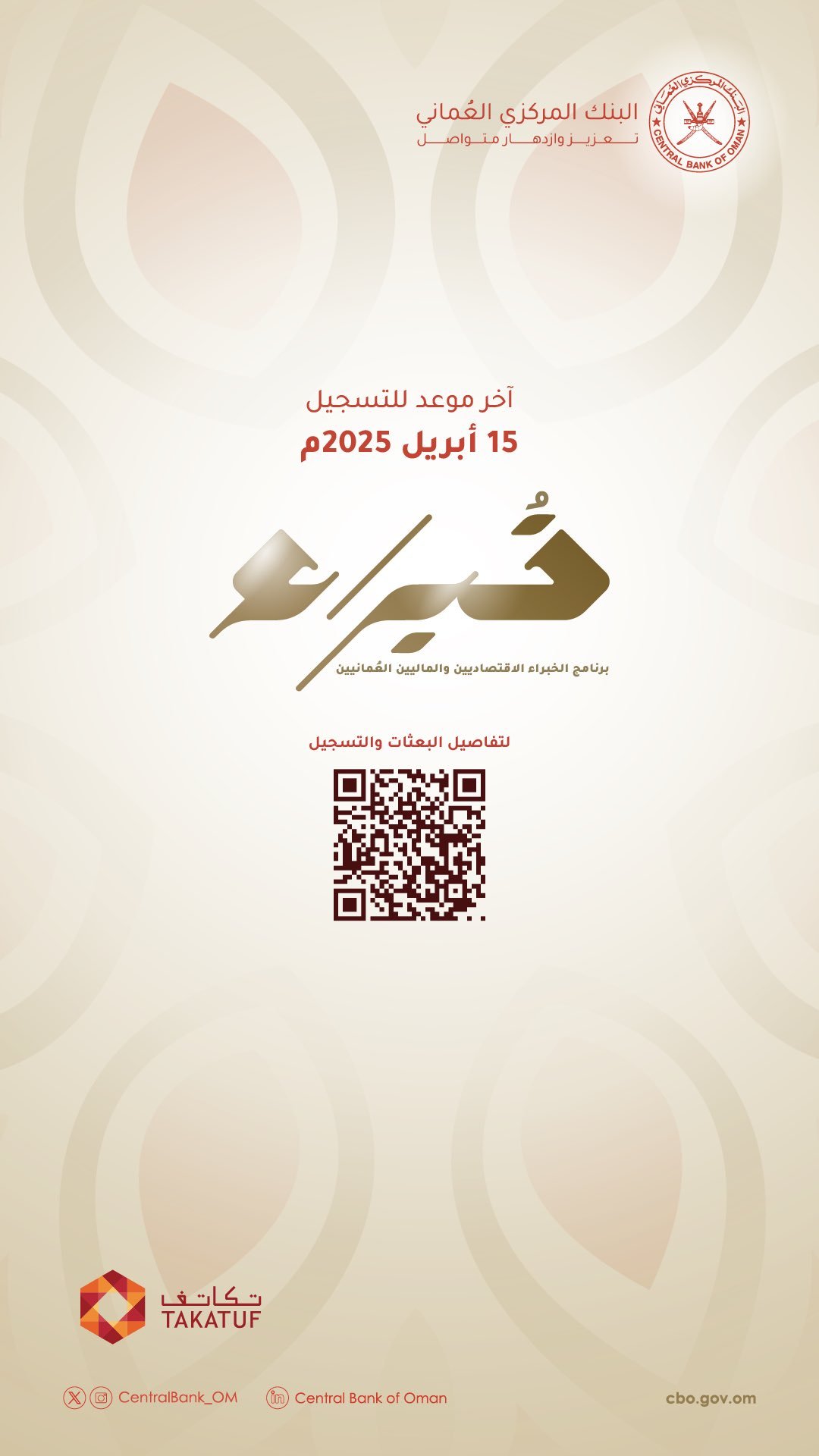 البنك المركزي العماني - انطلاق النسخة الثانية من برنامج الخبراء الاقتصاديين والماليين العُمانيين "خُـــبراء"
