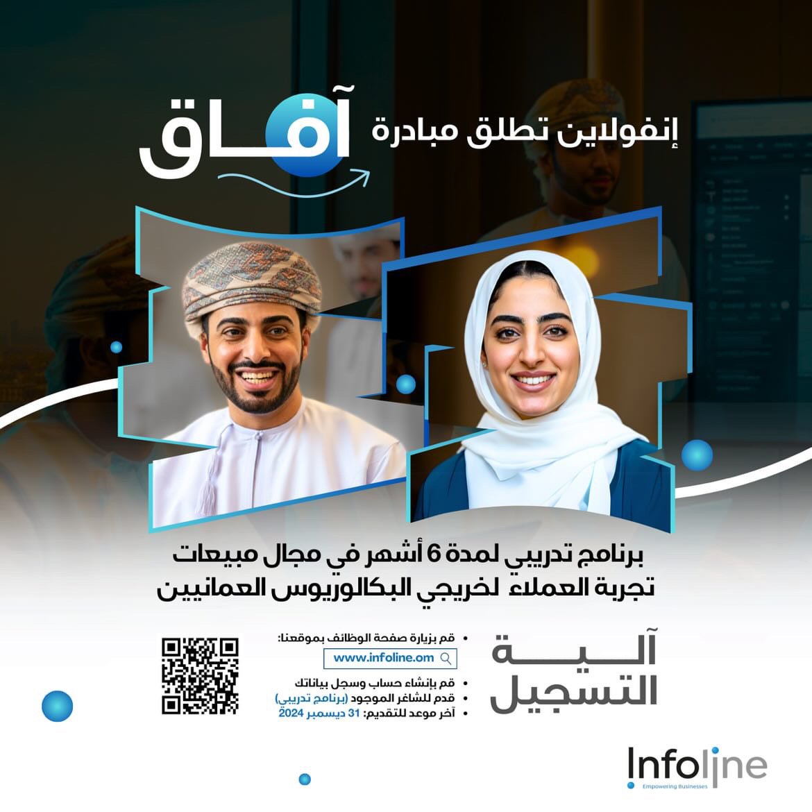شركة إنفولاين - مبادرة آفاق لخريجي البكالوريوس العمانيين ( برنامج تدريبي لمدة 6 أشهر في مجال المبيعات وتجربة العملاء )