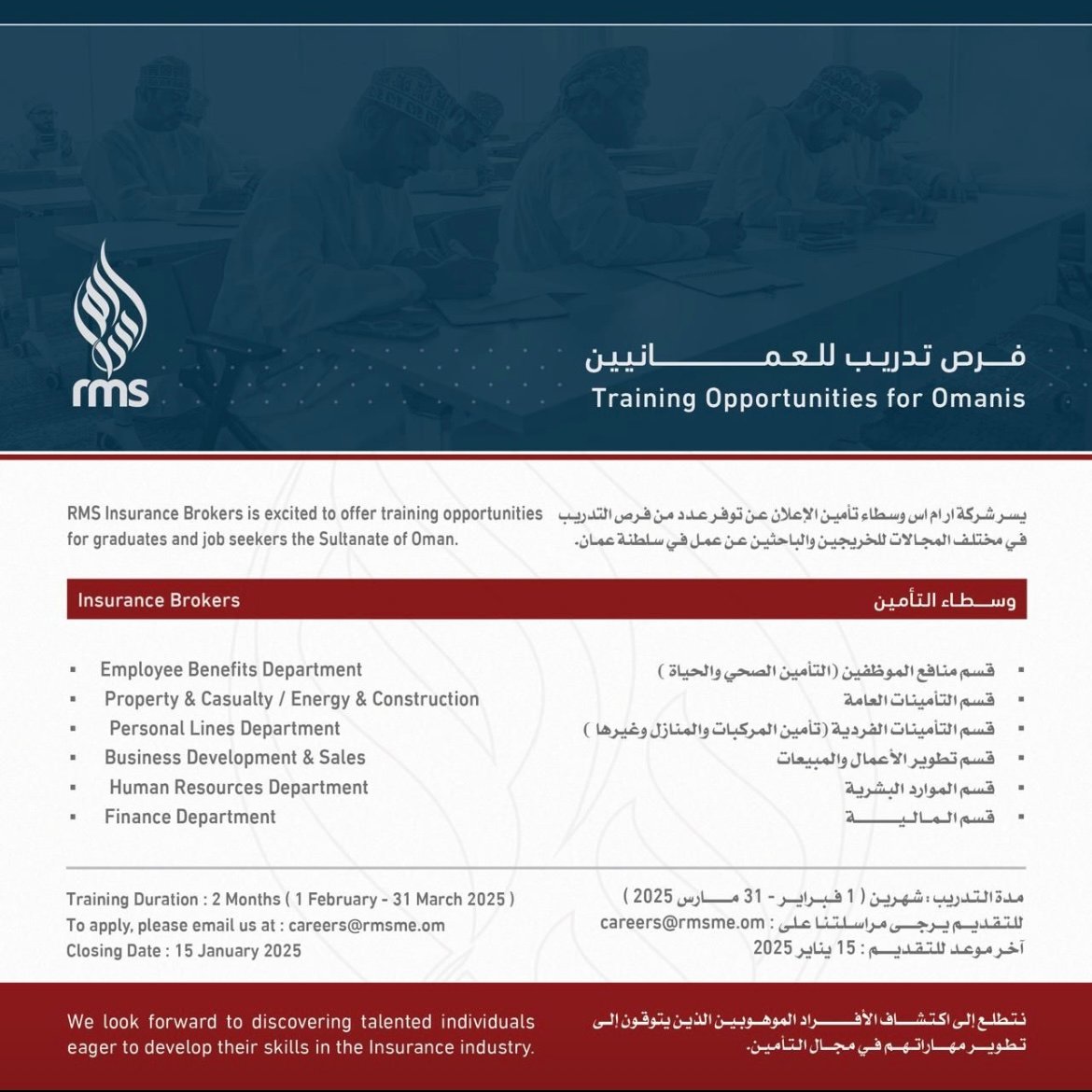 ار أم إس وسطاء تأمين - فرص تدريبية جديدة في مختلف المجالات للخريجين والباحثين عن عمل