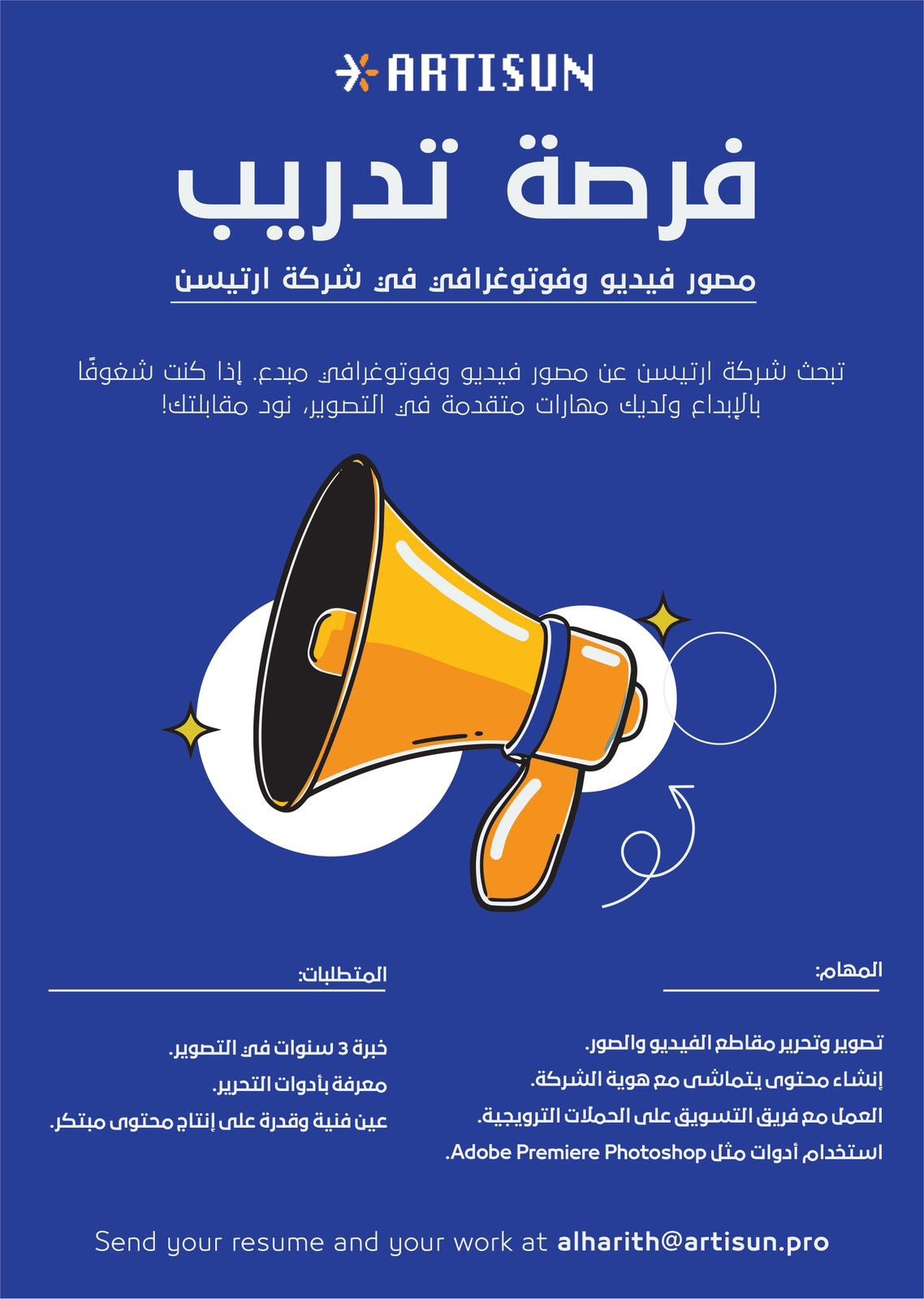 شركة ارتيسن - فرصة تدريبية ( مصور فيديو وفوتوغرافي )