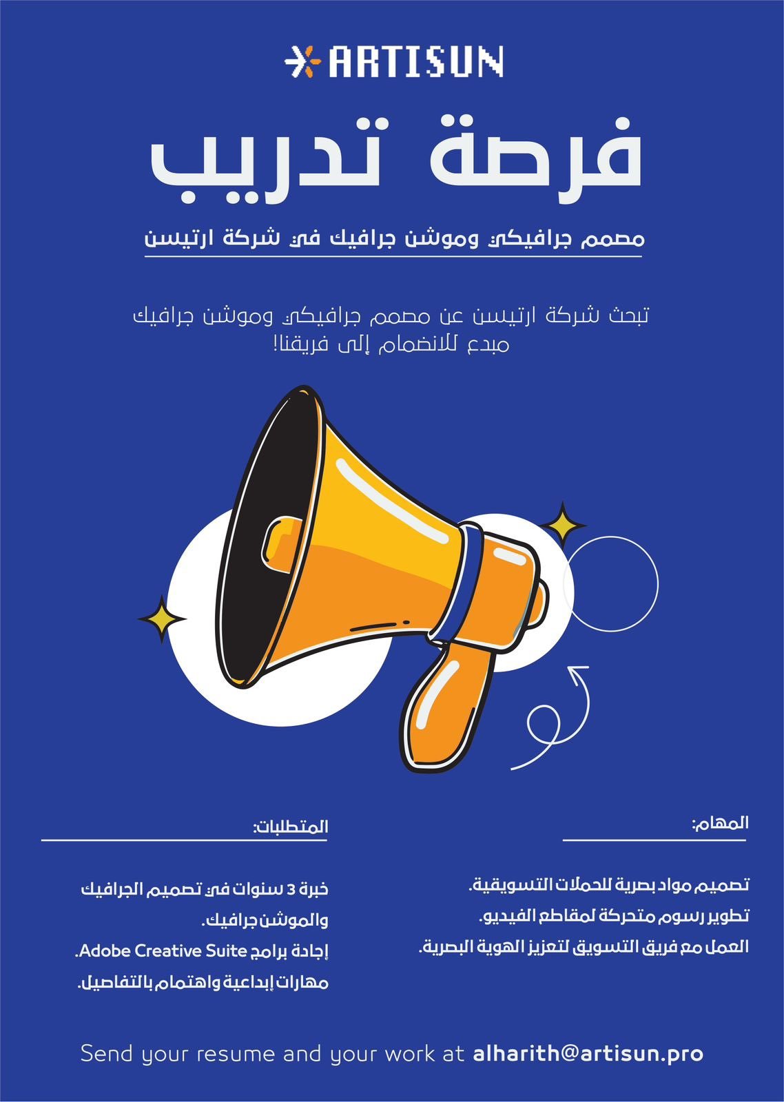 شركة ارتيسن - فرصة تدريبية في مجال التصميم الجرافيكي والموشن غرافيك
