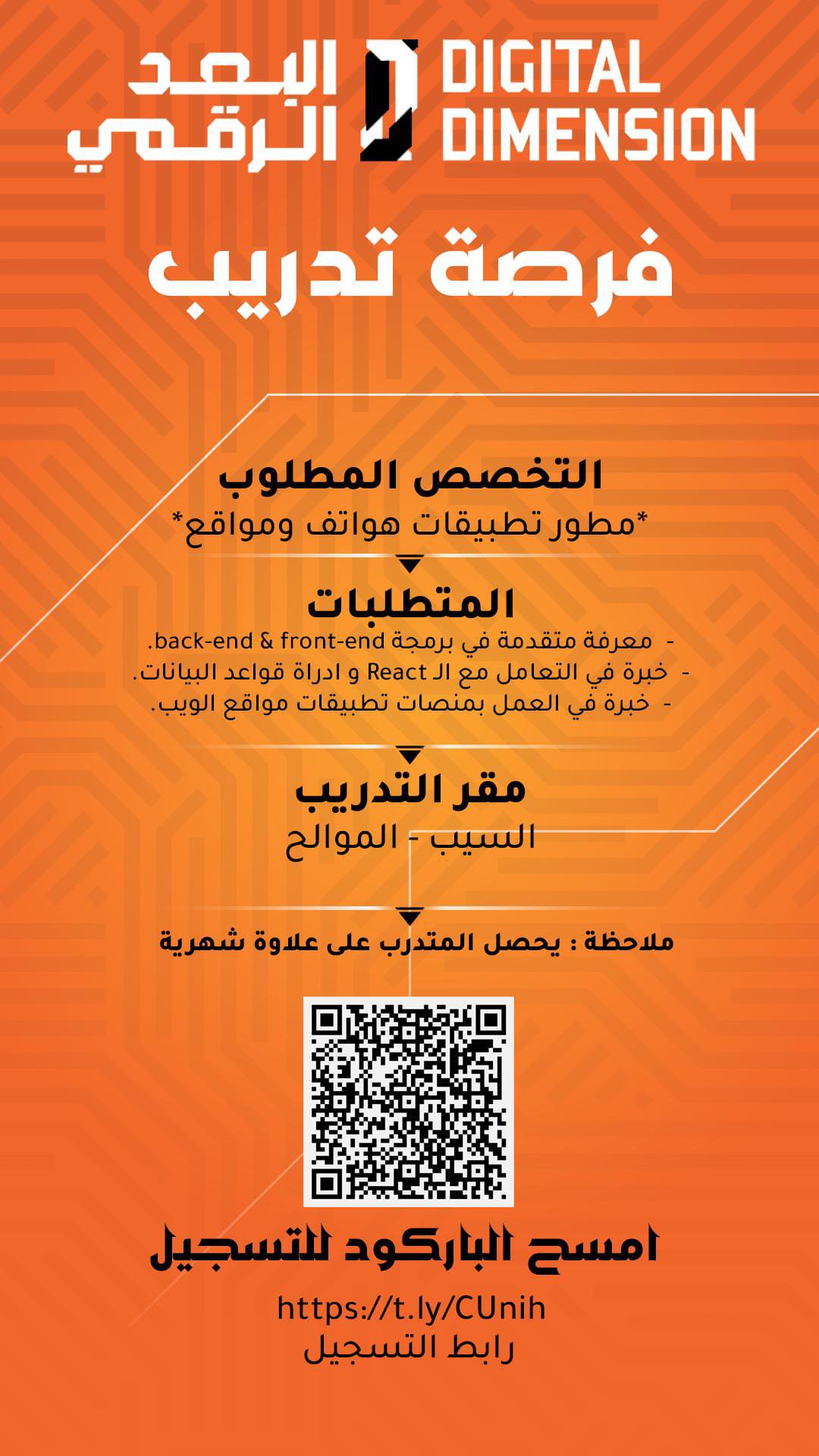 شركة البعد الرقمي - فرصة تدريبية ( مطور تطبيقات هواتف ومواقع )