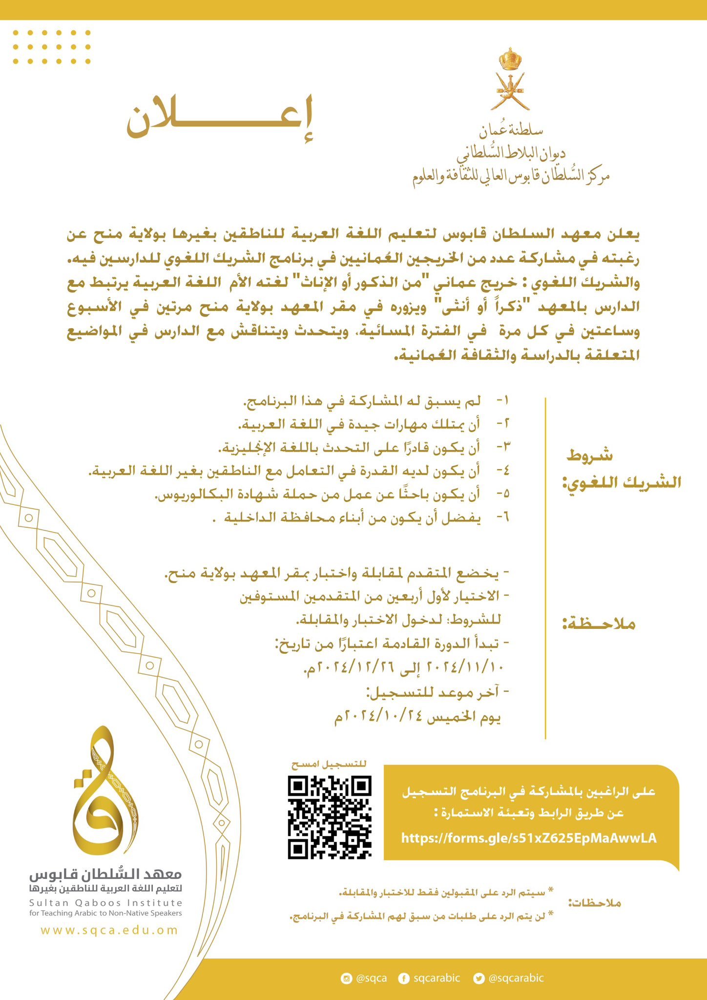 معهد السلطان قابوس لتعليم اللغة العربية للناطقين بغيرها بولاية منح - دورة في برنامج الشريك اللغوي