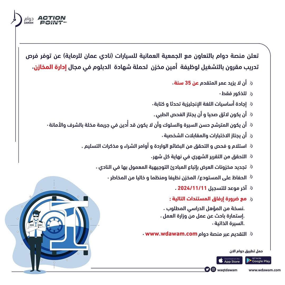 منصة دوام بالتعاون مع نادي عمان للرماية - فرص تدريب مقرون بالتشغيل لوظيفة أمين مخزن + مدرب رماية )