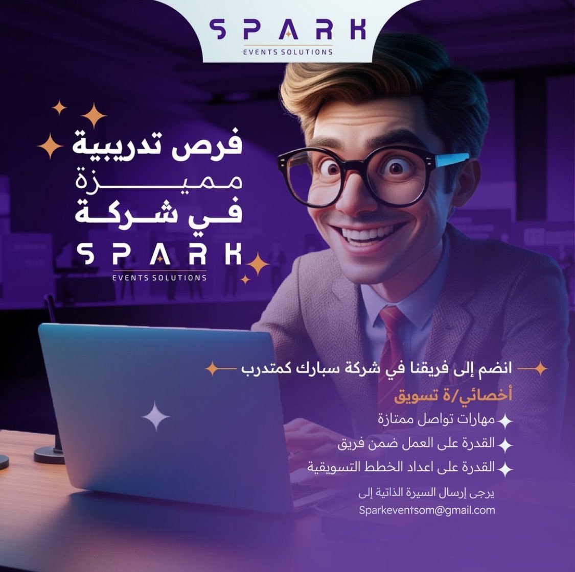 شركة سبارك - فرص تدريبية ( أخصائي ادارة و تنظيم فعاليات + أخصائي/ة تسويق )