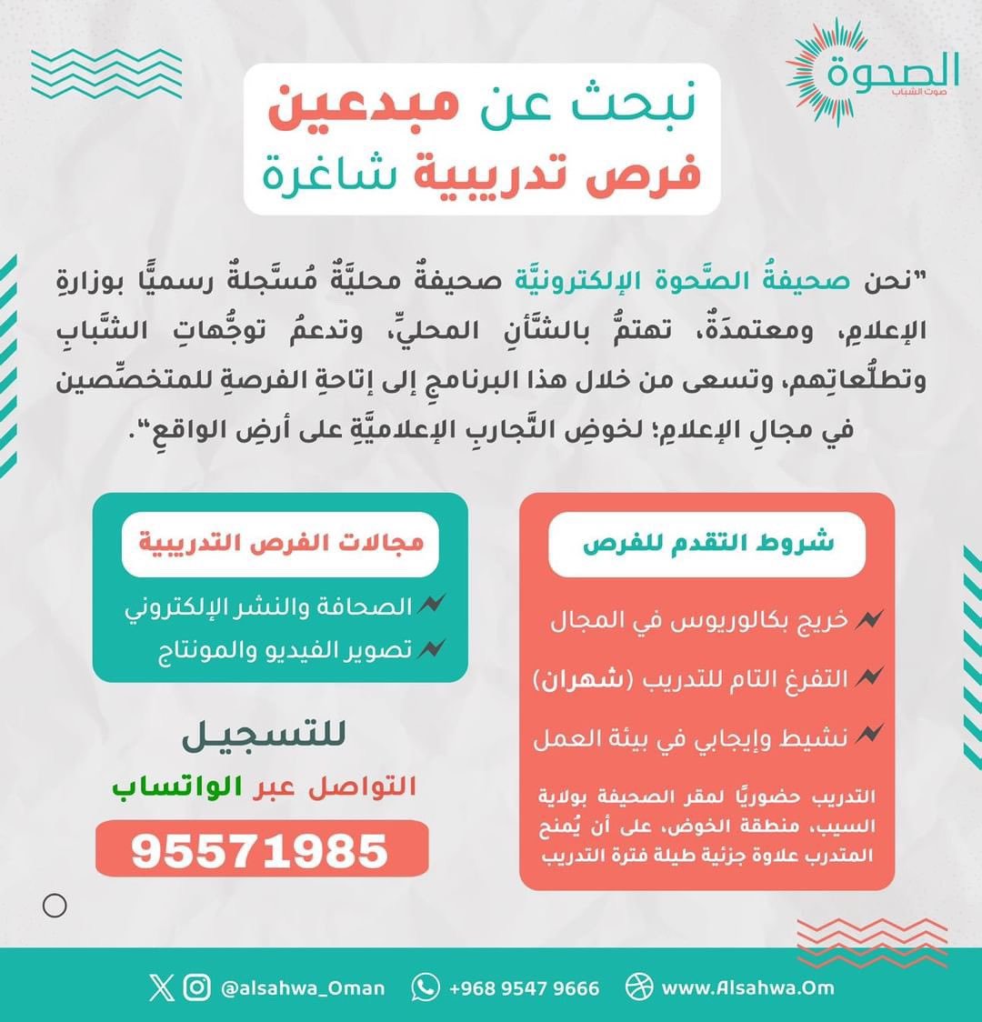 صحيفة الصحوة - فرصة تدريبية مع علاوة ( الصحافة والنشر الإلكتروني + تصوير الفيديو والمونتاج )