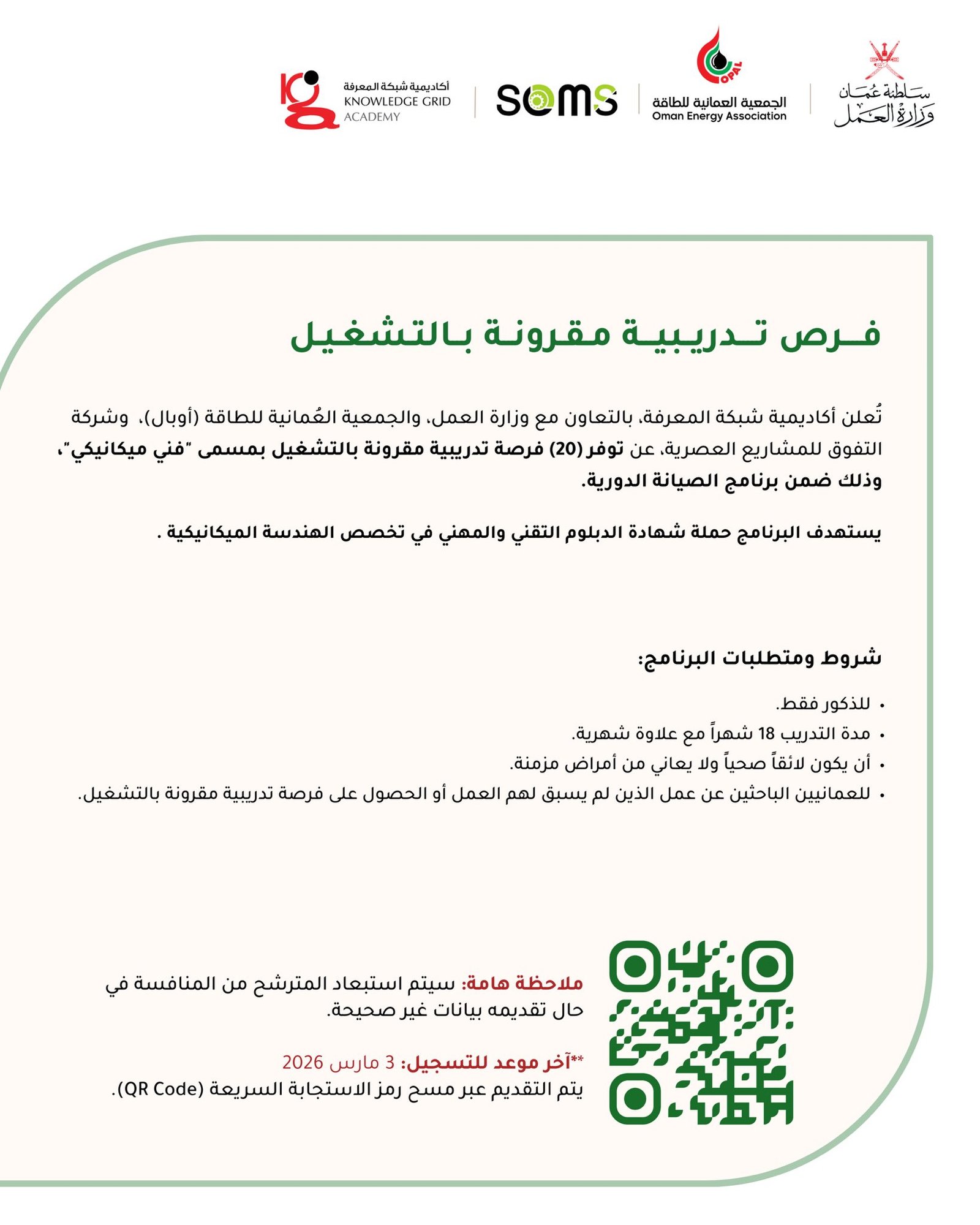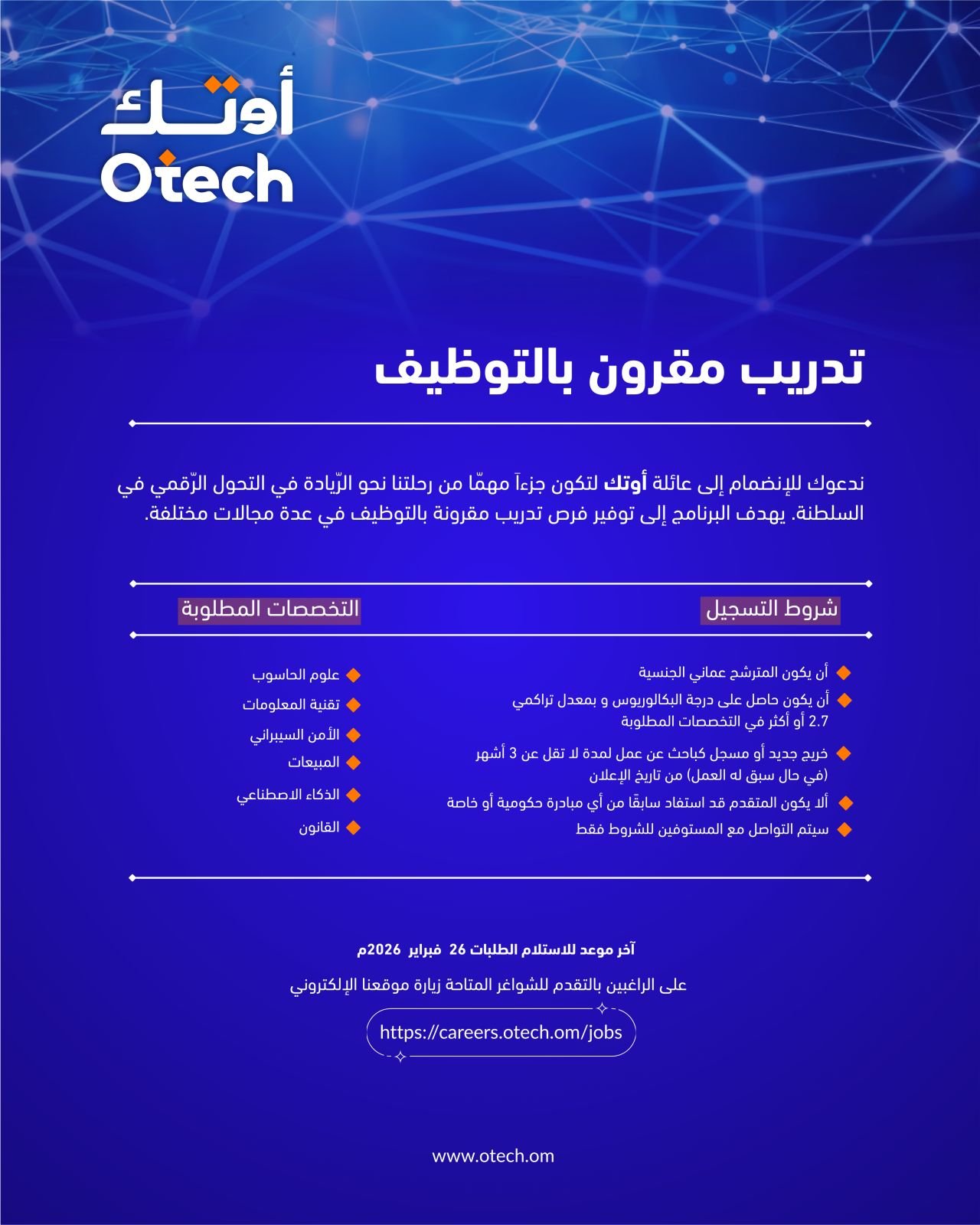 شركة أوتك في مسقط - برنامج تدريب مقرون بالتوظيف في عدة مجالات