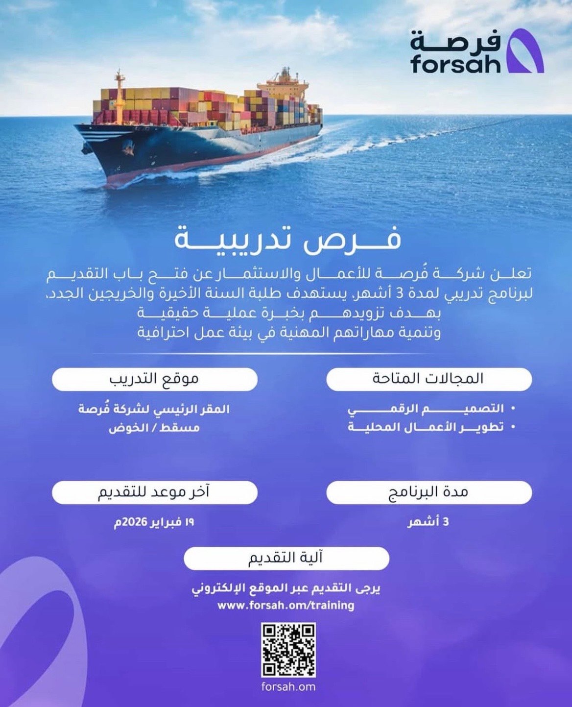 شركة فرصة للأعمال والاستثمار - برنامج تدريبي لمدة 3 أشهر، يستهدف طلبة السنة الأخيرة والخريجين الجدد