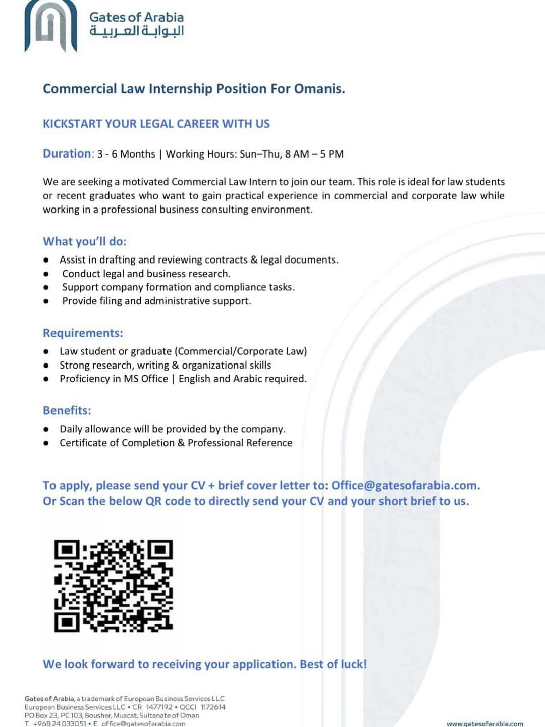 شركة البوابة العربية في مسقط - فرصة تدريبية في مجال القانون التجاري