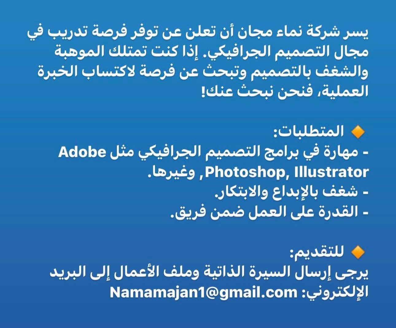 شركة نماء مجان - فرص تدريبية ( تصميم جرافيك )