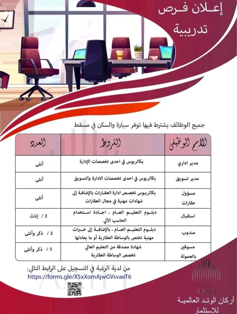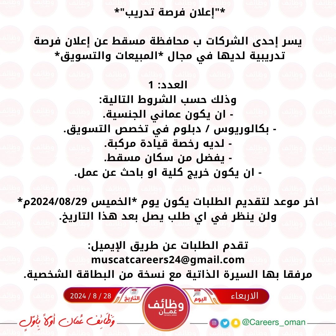 إحدى الشركات الرائدة في مسقط - فرصة تدريب في مجال المبيعات والتسويق