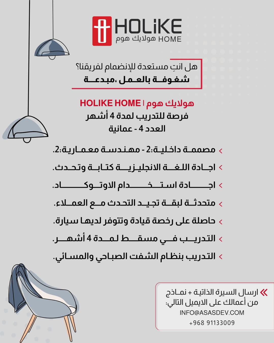 هولايك هوم - فرص تدريبية للعمانيات لمدة 4 أشهر ( مصصمة داخلية + مهندسة معمارية )