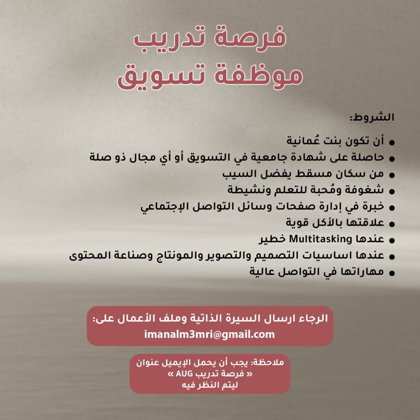 شركة تسويق في الخوض - فرصة تدريب ( موظفة تسويق )