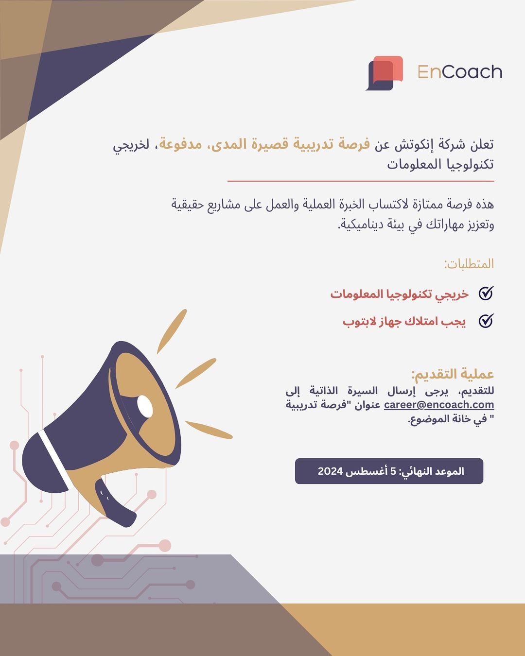 شركة إنكوتش - فرصة تدريبية قصيرة مدفوعة لخريجي تكنولوجيا المعلومات