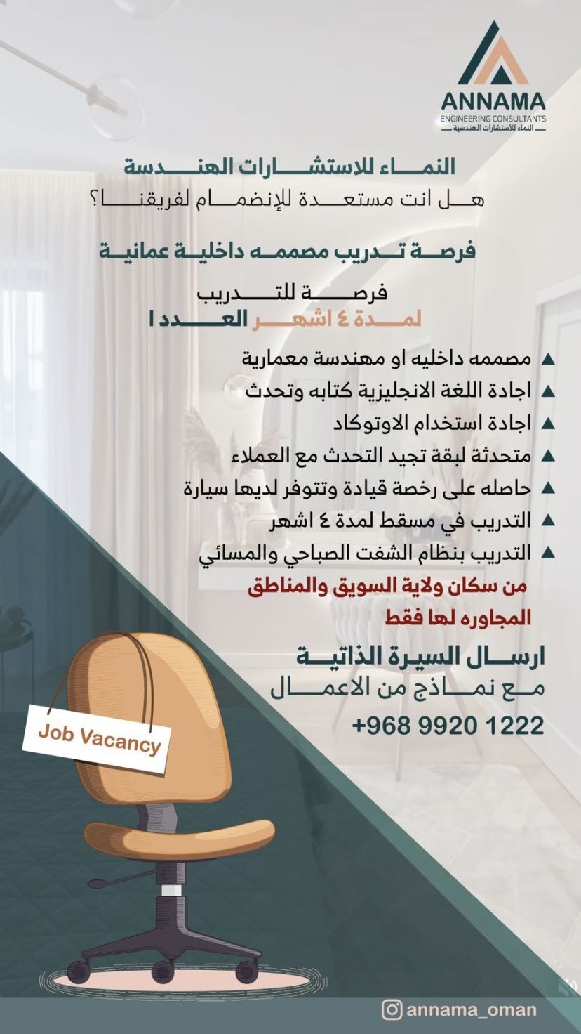 شركة النماء للاستشارات الهندسية في مسقط - فرصة تدريبية في مجال التصميم