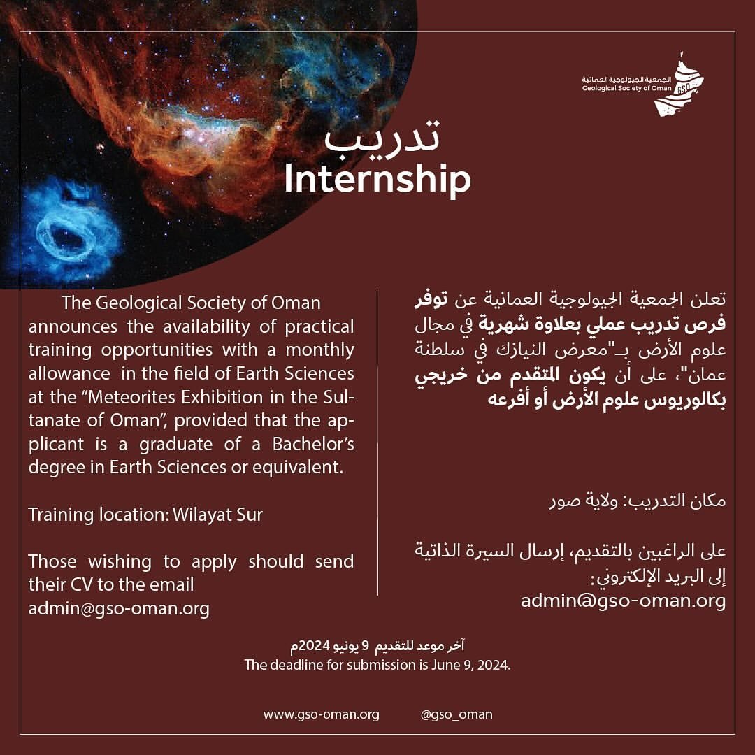 الجمعية الجيولوجية العُمانية - فرص تدريب عملي بعلاوة شهرية في مجال علوم الارض