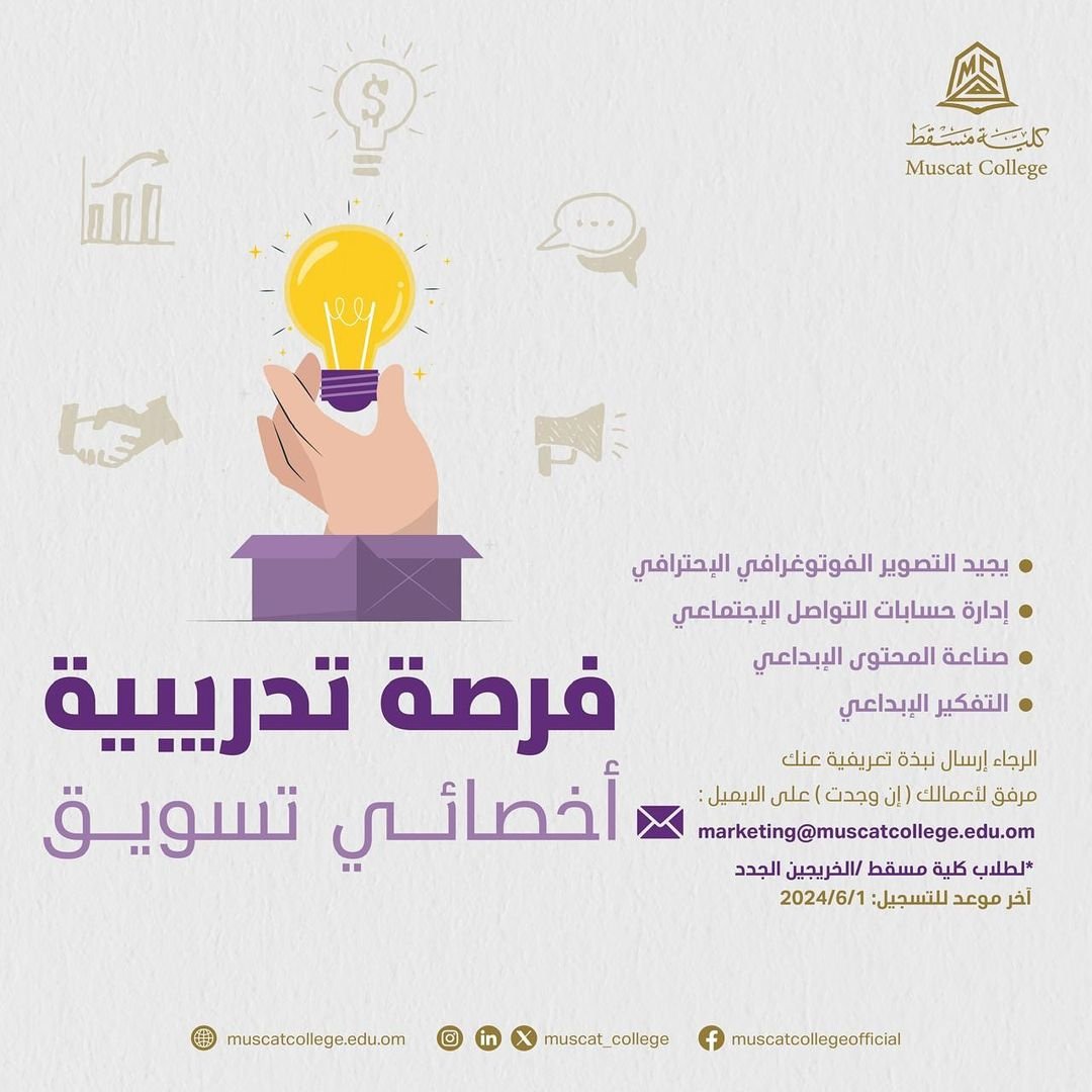 كلية مسقط - فرصة تدريبية ( اخصائي تسويق )