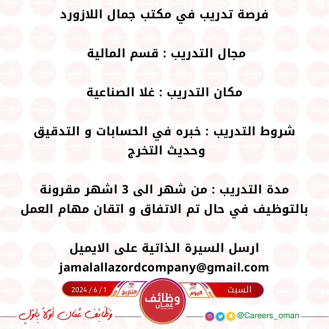 مكتب جمال اللازورد في غلا الصناعية - فرصة تدريبة مقرونة بالتوظيف ( قسم المالية )