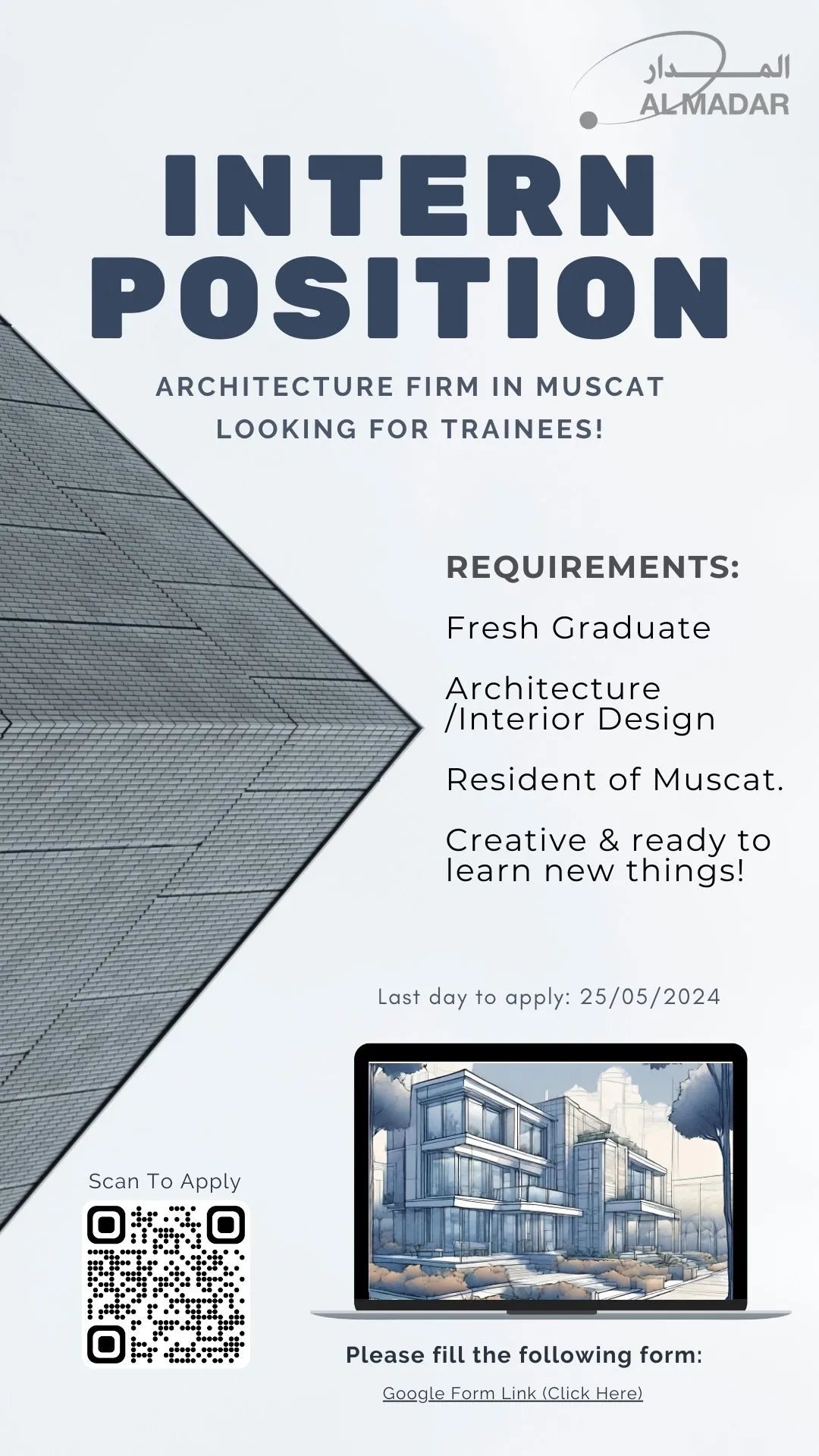 شركة المدار للاستشارات الهندسية - فرصة تدريب في مجال الهندسة المعمارية والتصميم الداخلي