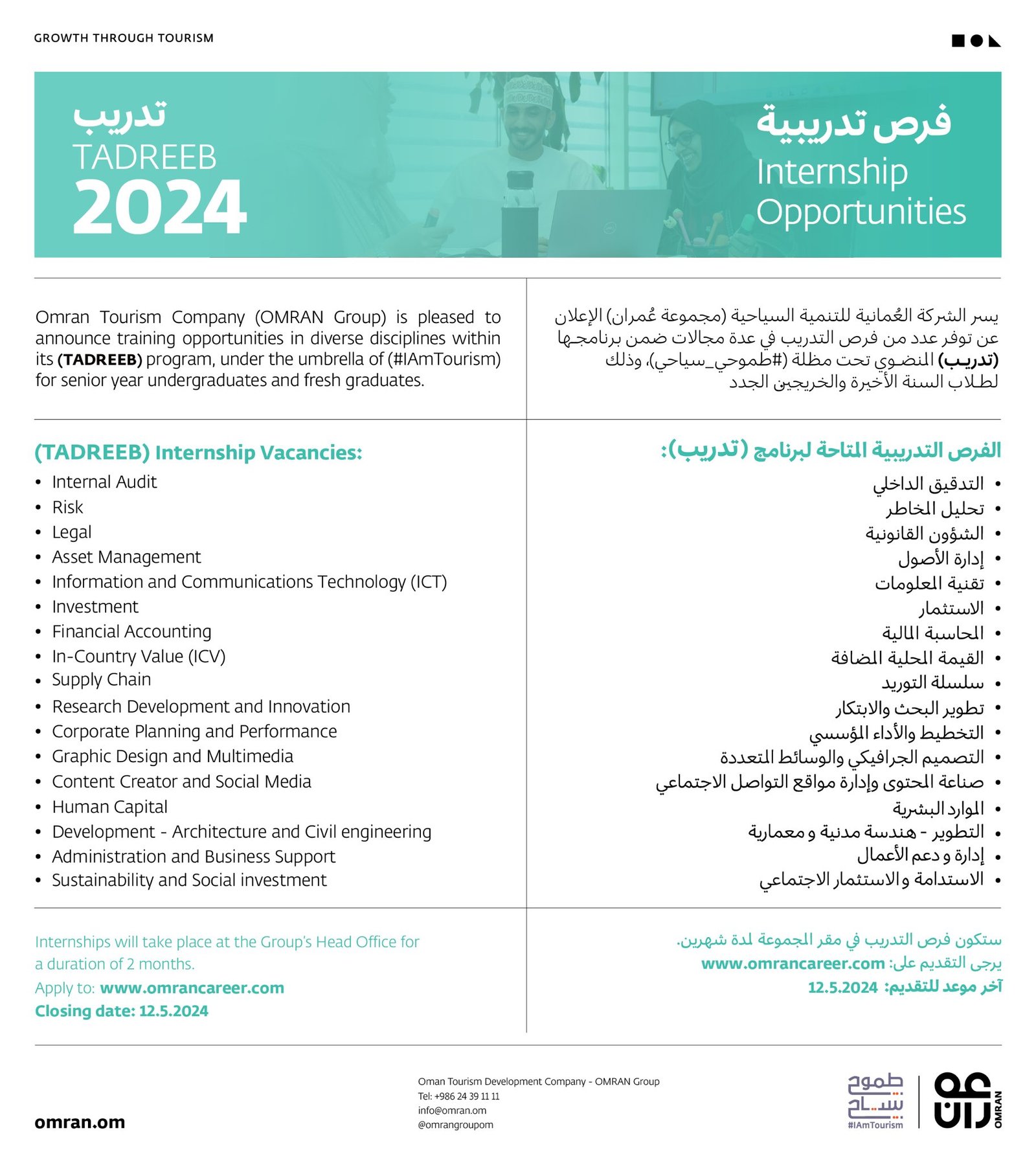 مجموعة عُمران - الإعلان عن عدد من فرص التدريب للطلبة المقبلين على التخرج والخريجين الجدد