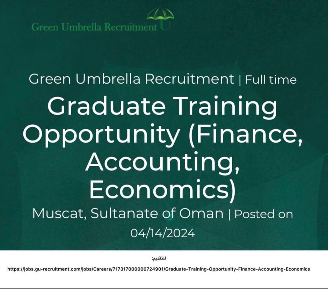 المظلة الخضراء في مسقط - فرص تدريب ( المحاسبة - المالية - الأقتصاد )
