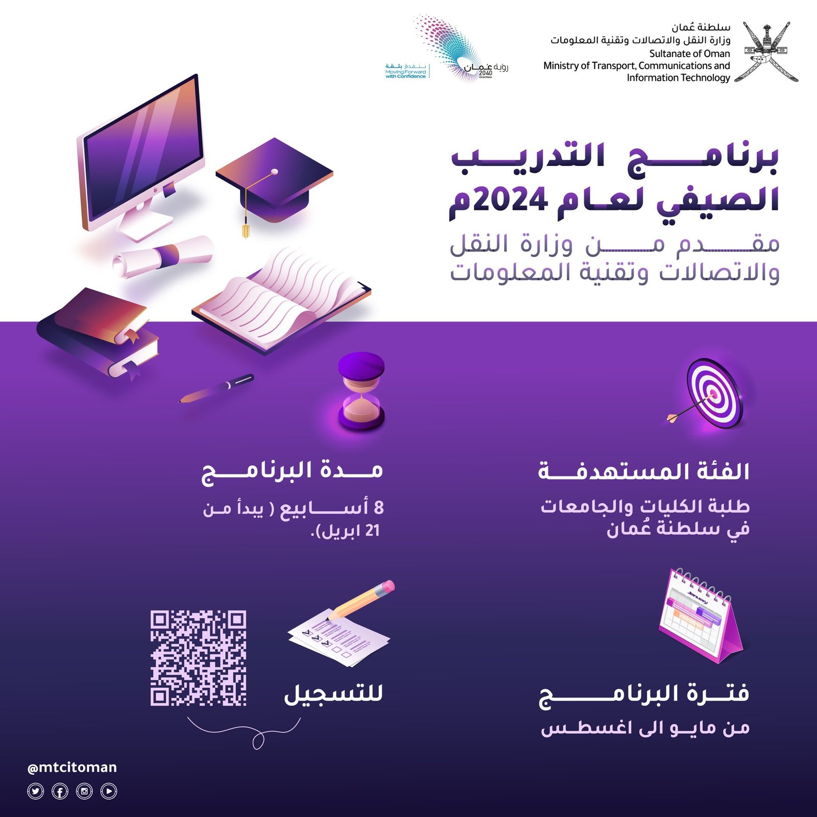وزارة النقل والاتصالات وتقنية المعلومات - برنامج التدريب الصيفي لعام 2024 لطلبة الكليات والجامعات في سلطنة عُمان