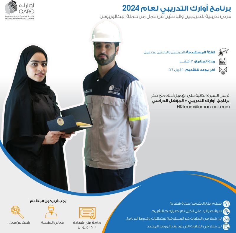 الشركة العمانية لدرفلة للألمنيوم أوارك - برنامج التدريب لعام 2024 للطلبة الخريجين والباحثين عن عمل