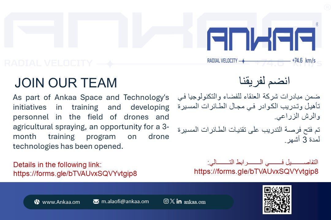 شركة العنقاء للفضاء والتكنولوجيا - فرص تأهيل وتدريب في مجال الطائرات المسيرة والرش الزراعي