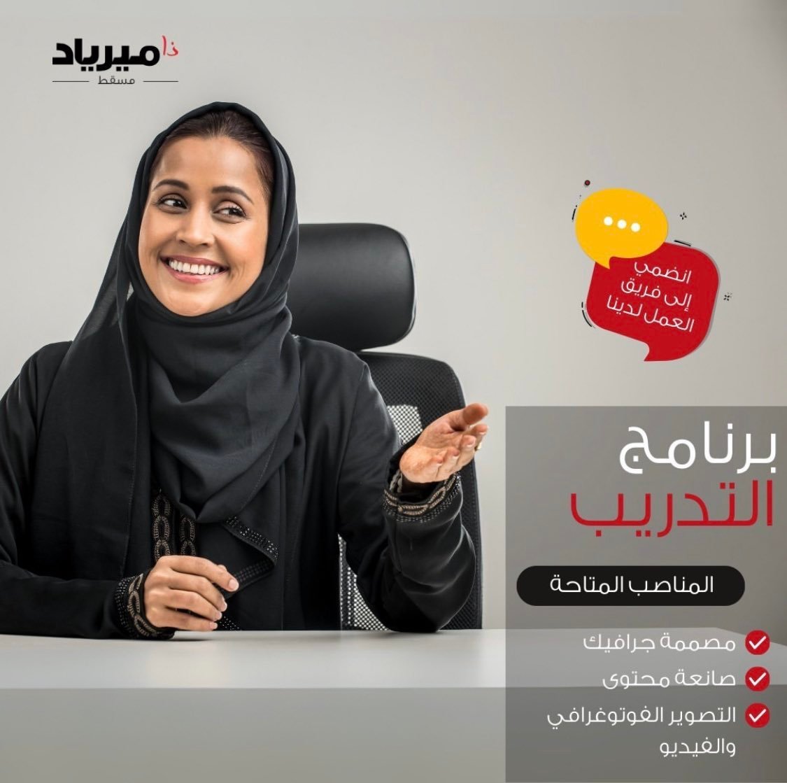 ميرياد مسقط في الخوض - فرص تدريبية ( مصممة جرافيك - صانعة محتوى - التصوير الفوتوغرافي والفيديو )