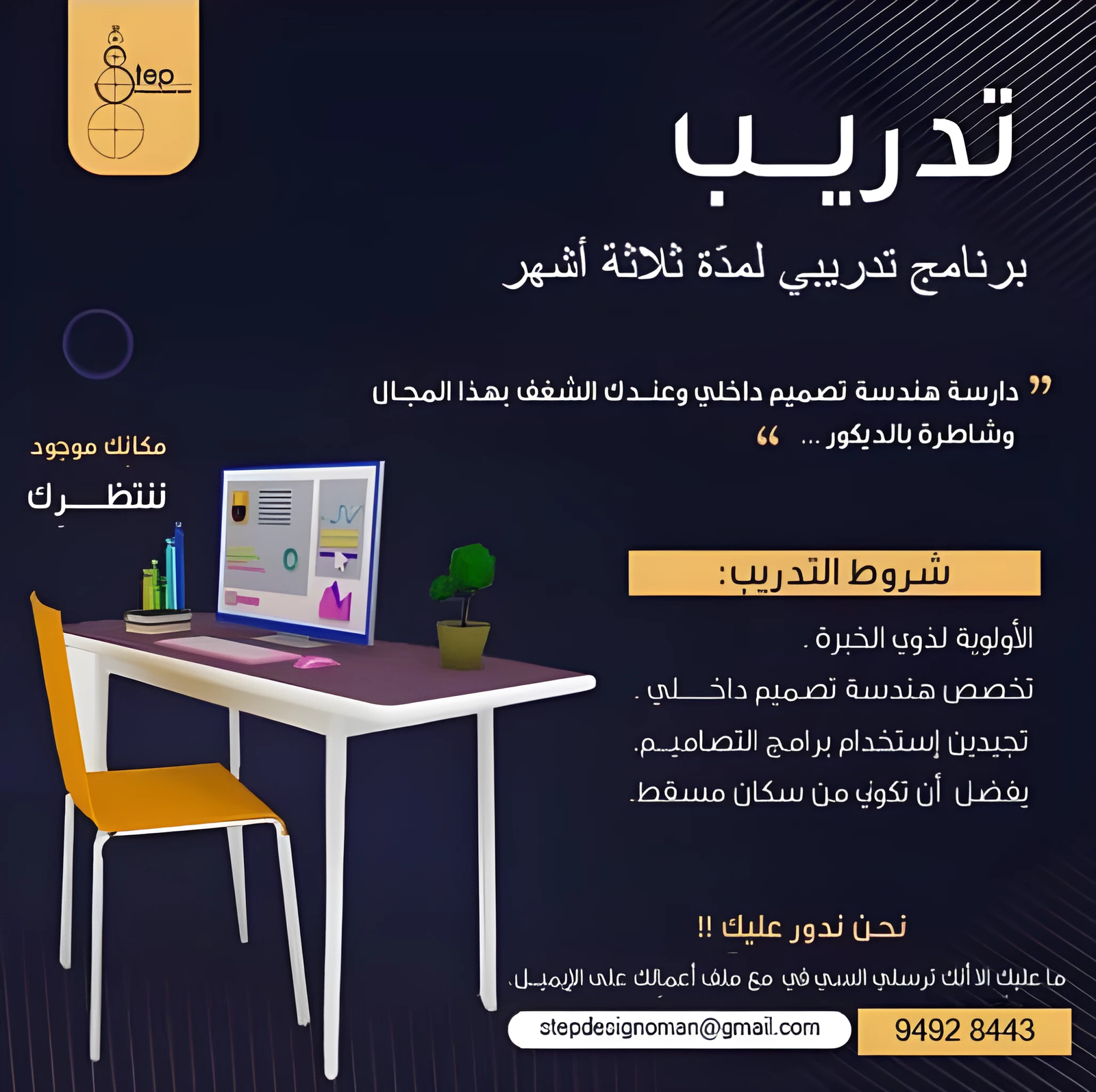 شركة Step Design & Fitout - فرصة تدريب لمدة 3 أشهر ( تخصص هندسة تصميم داخلي )