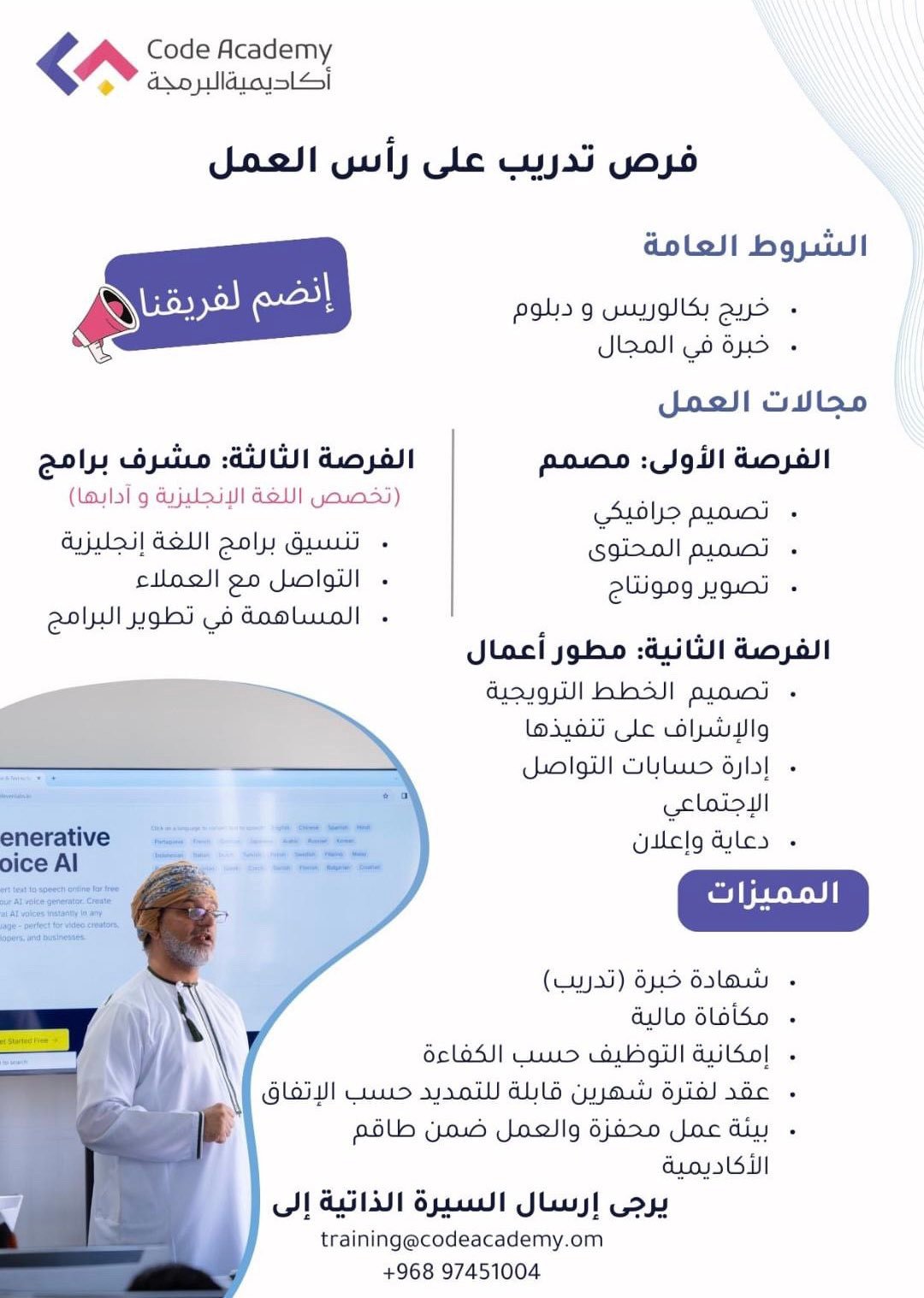 أكاديمية البرمجة - فرص تدريب على رأس العمل ( مصمم - مشرف برامج - مطور أعمال )