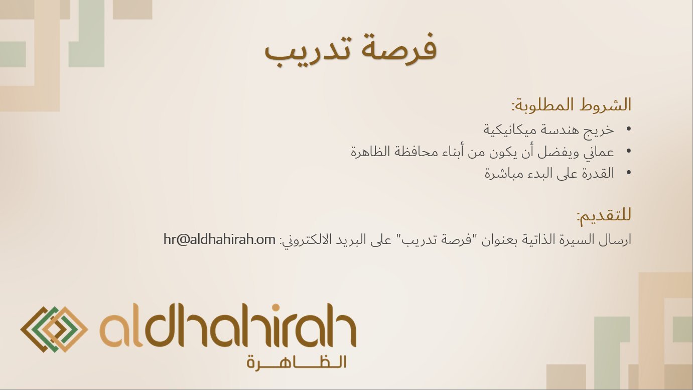 شركة الظاهرة - فرصة تدريبية في مجال ( الهندسة الميكانيكية )