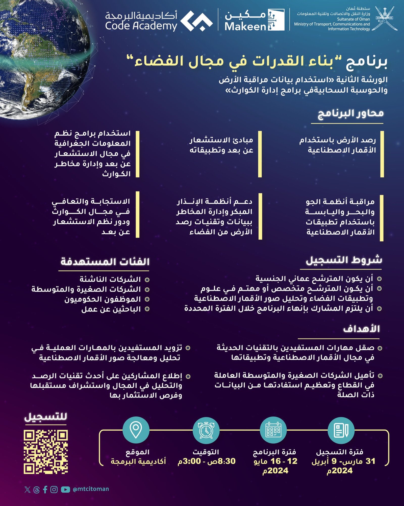 وزارة النقل والاتصالات وتقنية المعلومات بالتعاون مع أكاديمية البرمجة - برنامج بناء القدرات في مجال الفضاء