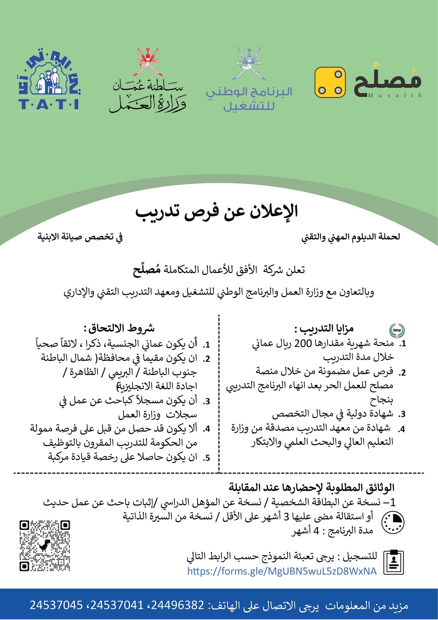 شركة الأفق للأعمال المتكاملة ( مصلّح ) - فرص تدريب مع منحة شهرية ( تخصص صيانة الأبنية )