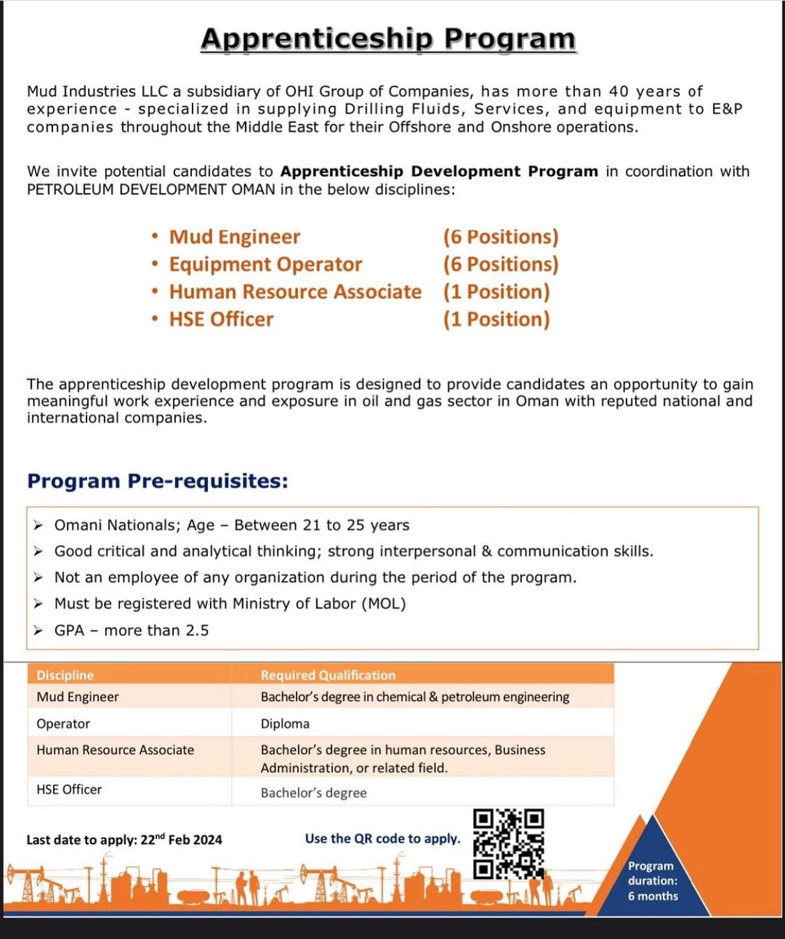 شركة Mud Industries - فرص تدريبية لمدة 6 أشهر بالتعاون مع شركة تنمية نفط عمان