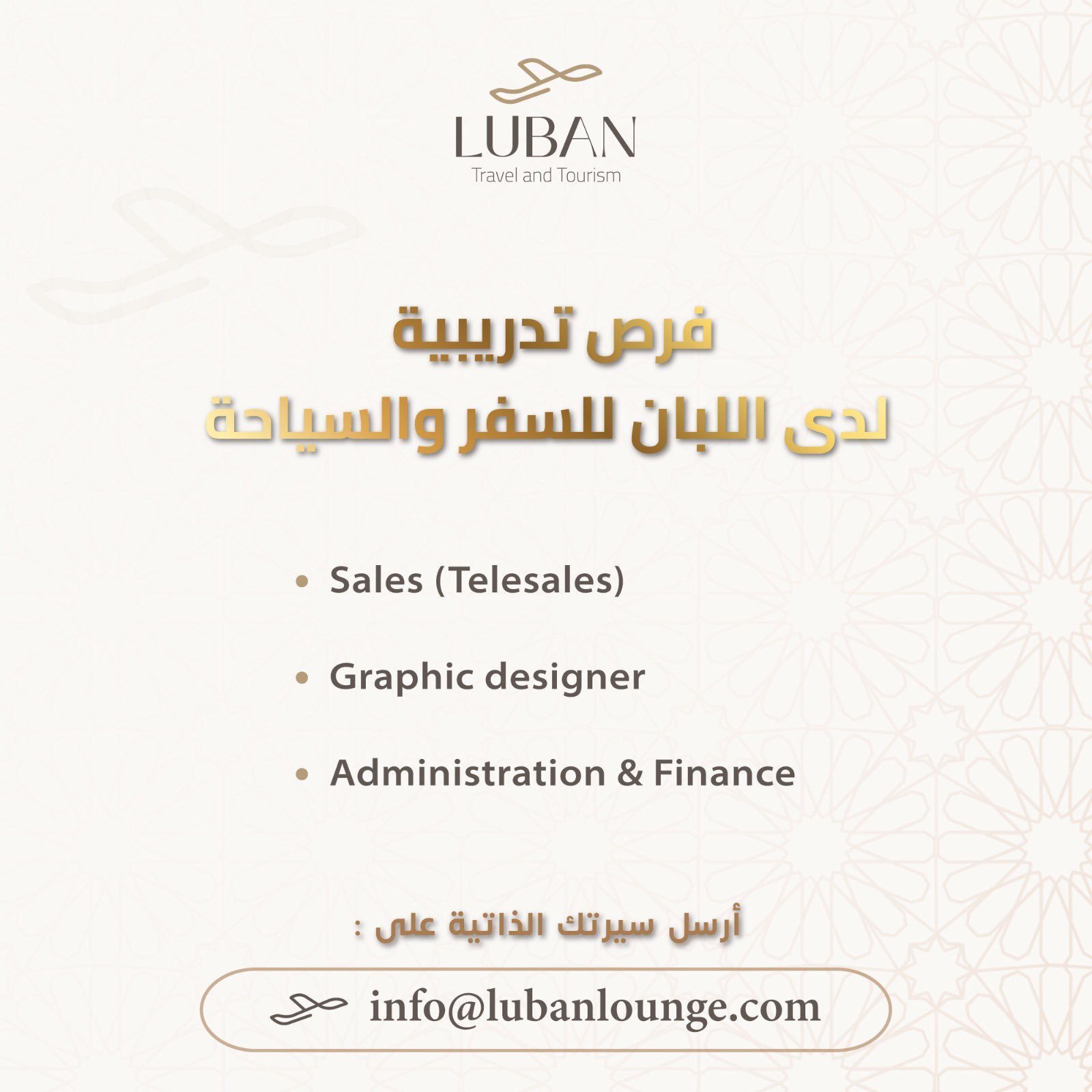 شركة اللبان للسفر والسياحة الغبرة الشمالية - فرص تدريبية جديدة ( مبيعات عبر الهاتف + مصمم جرافيك + الإدارة المالية )
